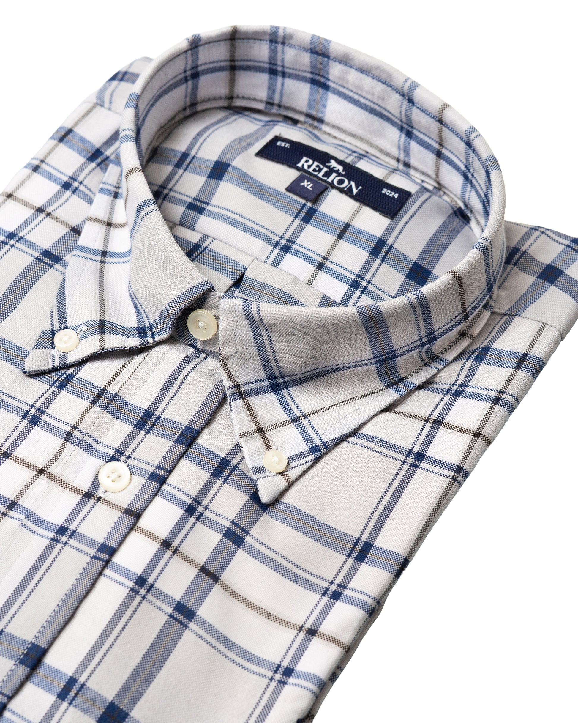 A modern take on a classic. This Oxford shirt features a bold check pattern and wide button-down collars for a sharp, updated look. Made from breathable cotton, it's perfect for both casual and smart-casual outfits.